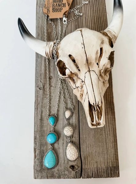 Western Stone Pendant Necklace Burnished Silver and Turquoise Color 18″ + 3” Extension